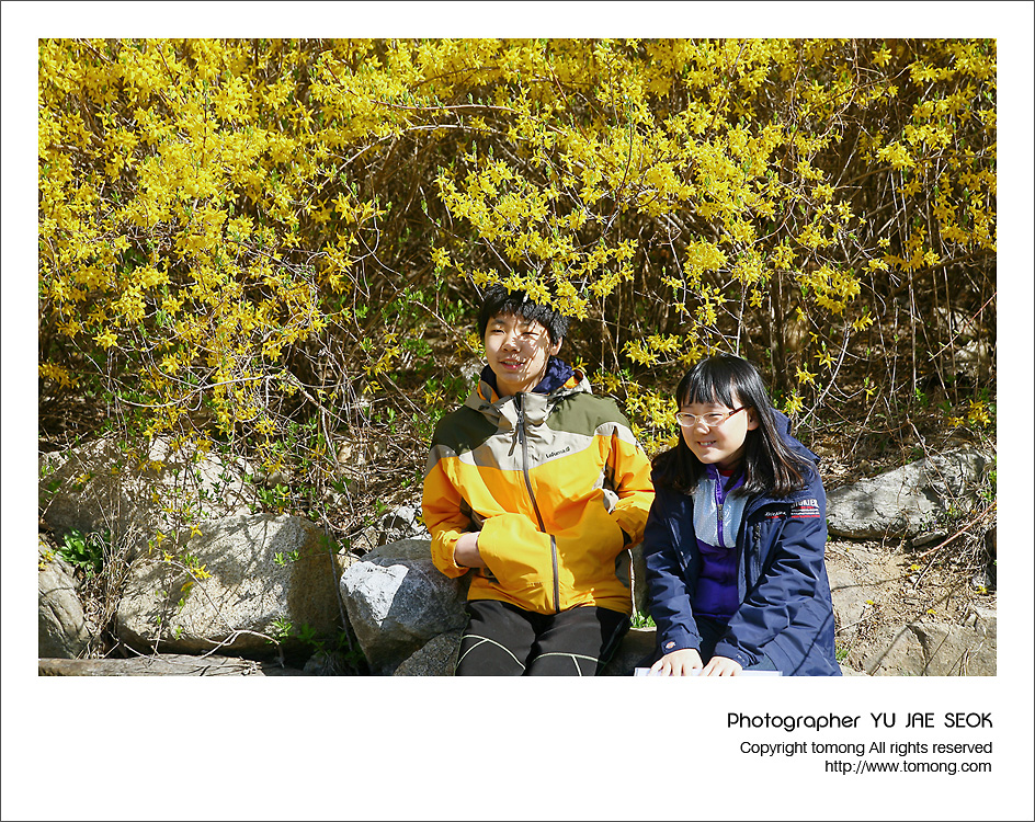 주차장에 개나리가 너무 이쁘게 펴서 사진을 같이 찍었다…