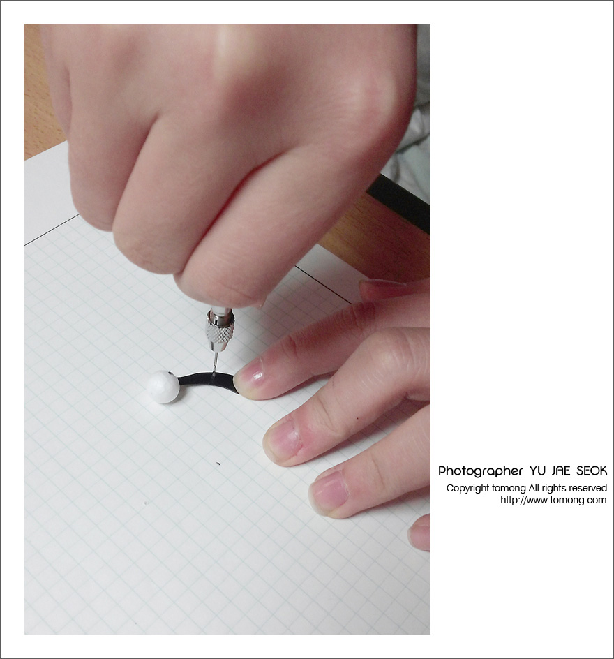 눈썹 고정하기위해 핀 바이스로 구멍 뚫기