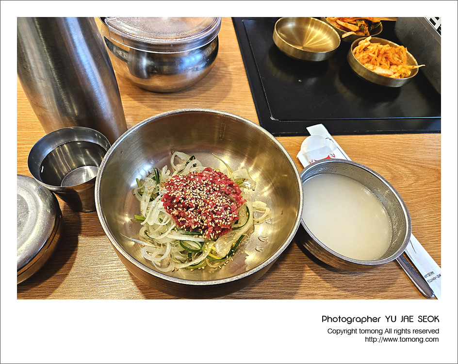육회를 1접시 시키고, 공기밥을 시켜서 밥반, 육회반 비벼 드시는 곳….